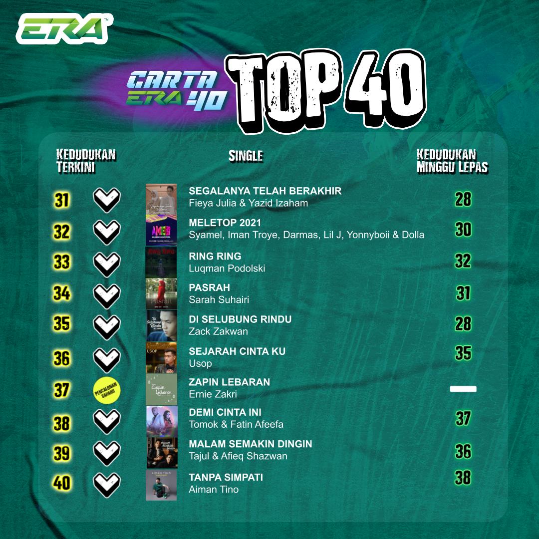 Era Muzik Hit Terkini S Tweet 24434 Pertama Kalinya Menjuarai Cartaera40 Minggu Ini Floor88band Pencalonan Baharu Liplapraya Dalamdiamakumencintaimu Angelbaby Ternyataaku Zapinlebaran Teruskan Mengundi Lagu Lagu Kegemaran Korang Di